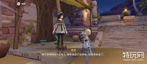 在对话中获得村子北边有一个种石头花的老人的信息