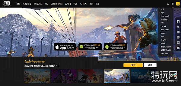 2、进入pubgmobile国际服官网后,可以点击右上角的地球按钮选择中文字样,这样页面的字样就会自动调整会中文,这样更加一目了然。