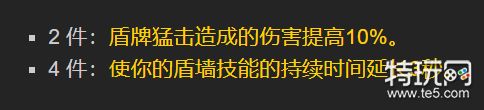 2件套特效提高仇恨,4件套特效提高盾墙持续时间,比较中庸没有质变。
