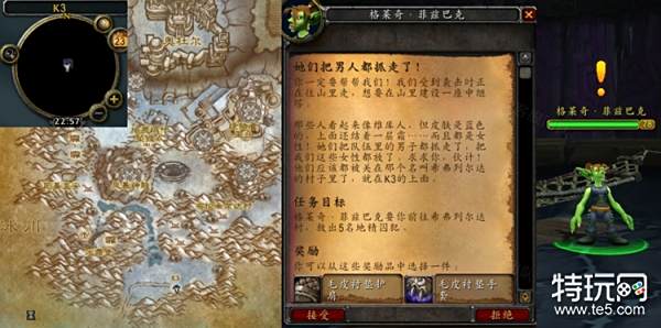 魔兽世界她们把男人都抓走了任务怎么做?这个任务首先需要玩家到格莱奇·菲兹巴克(风暴峭壁,K3)接去任务,接下来特玩网小编就给大家带来魔兽世界她们把男人都抓走了任务怎么做流程。