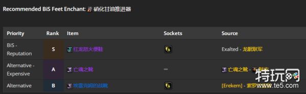 鞋子装备团本前的最优解是红龙怒火便鞋,P1阶段是治疗能量长靴,附魔推荐硝化甘油推进器、附魔靴子 - 海象人的活力