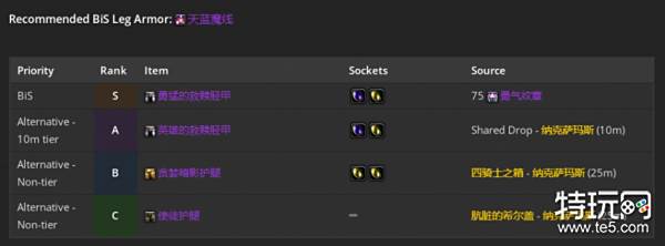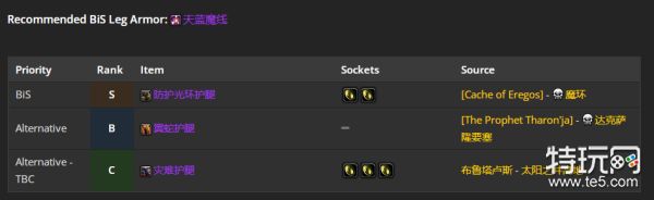 腿部装备团本前的最优解是防护光环护腿,P1阶段是勇猛的救赎胫甲,附魔推荐天蓝魔线
