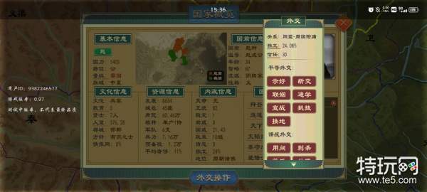 ◆外交:丰富的外交关系:宗主、附庸、盟友、仇敌等在推演中不断变换。涵盖联姻、宣战、结盟、威压等多达数十种外交选项,还原历史上的经典博弈。