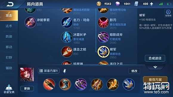 装备推荐:红色打野刀+攻速鞋+暗影战斧+无尽战刃+宗师之力/电刀+破军