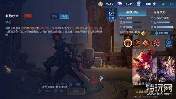 被动:玄策助攻或击击溃英雄都会激发心中的狂血使得移速增加70%(随时间效果衰减),攻速增加75%,持续5秒。