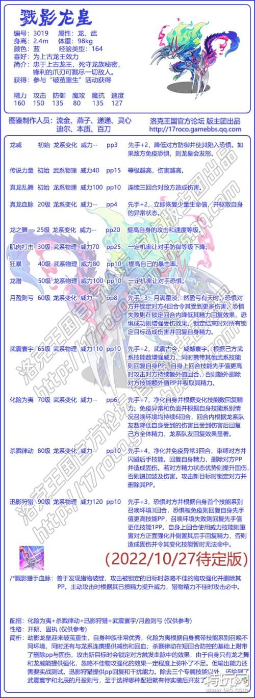 洛克王国劫影龙皇破茧重生种族值技能表爆料