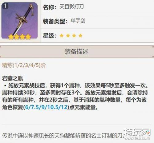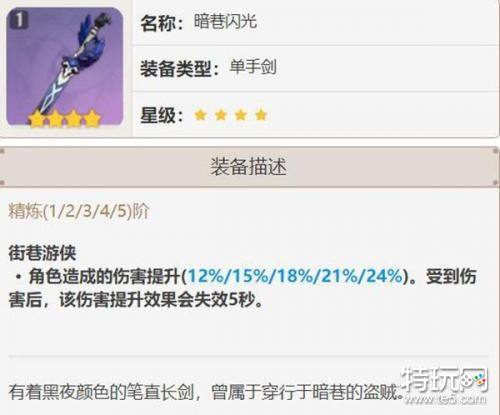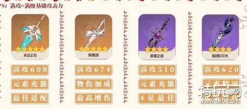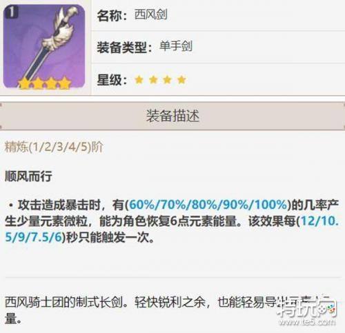 提供适中的基础攻击力和元素充能效率,是四星单手剑中较为均衡的选择。
