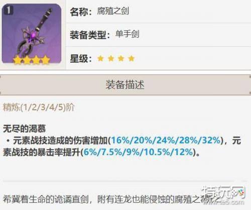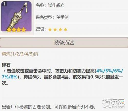 提供四星单手剑中最高的基础攻击力,能使班尼特的大招产生更高的攻击力加成。