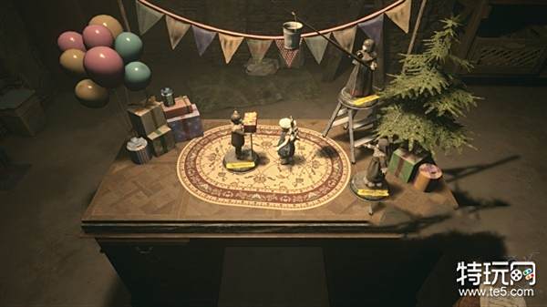 屏幕再次变黑,转身推门出去,走到头右拐,用儿童铁雕打开左侧一扇上锁的门,拿到“人偶(造型2)”;再返回刚才的房间,在大桌子的左边拿到“人偶(造型1)”;进入隔壁房间,将刚才拿到的两个人偶放在桌子上,获得“吉米房间的钥匙”。