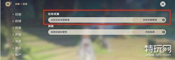2、在游戏界面中找到【设置——资源——任务资源】;