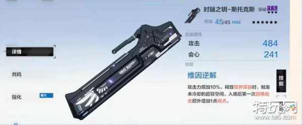 3、武器搭配推荐:六星专属武器时隧之钥斯托克斯(偏向功能型,省一个蹭闪的时间,每次切入场时进入核心超维空间放的第一个三消,可以多给一个视点);
