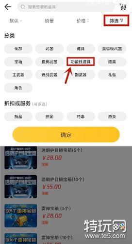 3、来到商店界面后,点击【筛选】-【功能性道具】;