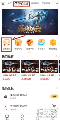 2、登录QQ账号,并且切换CF穿越火线的页面后,点击下图所示的【全部道具】;