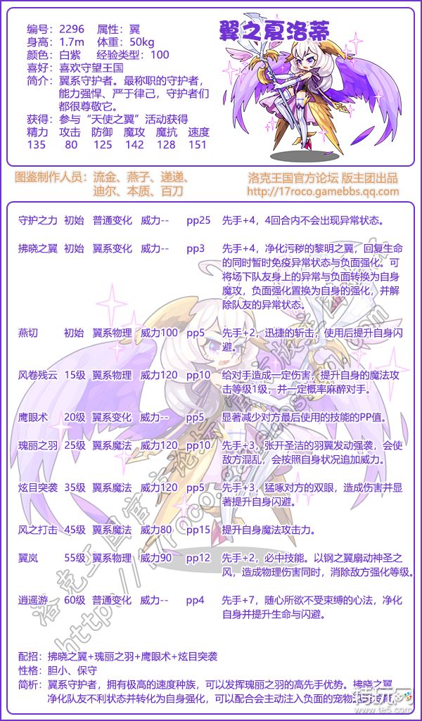 3、翼之夏洛蒂简析:翼系守护者,拥有极高的速度种族,可以发挥瑰丽之羽的高先手优势。拂晓之翼净化队友不利状态并转化为自身强化,可以配合会主动注入负面的宠物迅速发育。