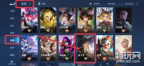 1、打开王者荣耀进入英雄页面,选择法师,点击姜子牙。