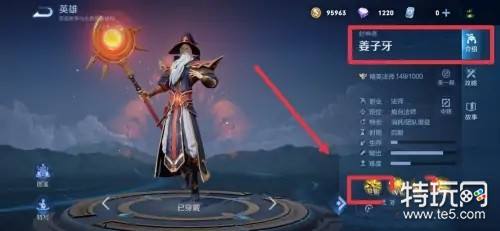 3、弹出封神者姜子牙介绍页面,点击下方经验。