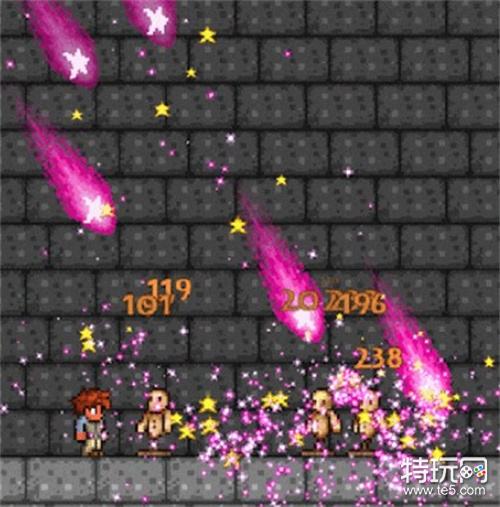 这把武器是玩家击败月亮领主掉落的武器,非常适合群秒的武器,可以称得上是地毯式轰炸武器,召唤的星辰造成的伤害是基础伤害的2倍,照明效果很好,可以用来探索地图。