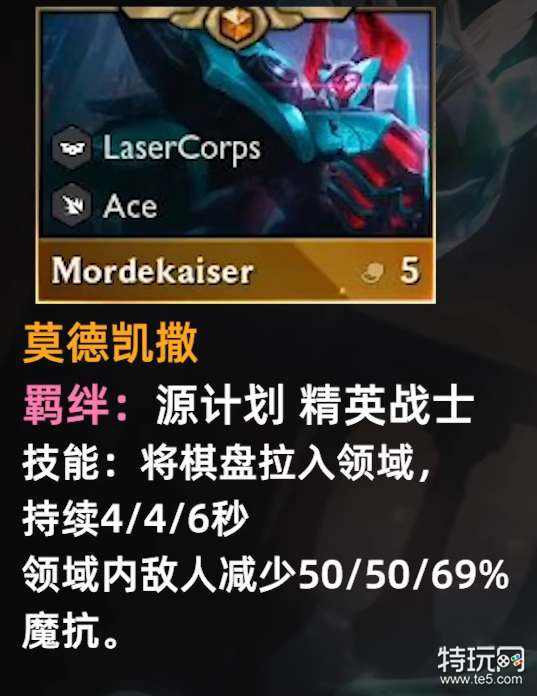 1、s8赛季中莫德凯撒是强力的5费卡,羁绊为【源计划】【精英战士】