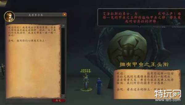 克里多尔米了解到勇士们很喜欢敲这面甲虫之锣,所以带来了一面一模一样的锣来满足大家,可以尽情敲响它,如果你的角色拥有甲虫之王的头衔,NPC的对话面板也会不一样,而且还会有特殊喊话。