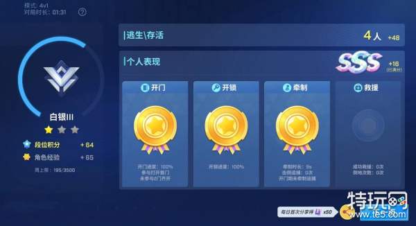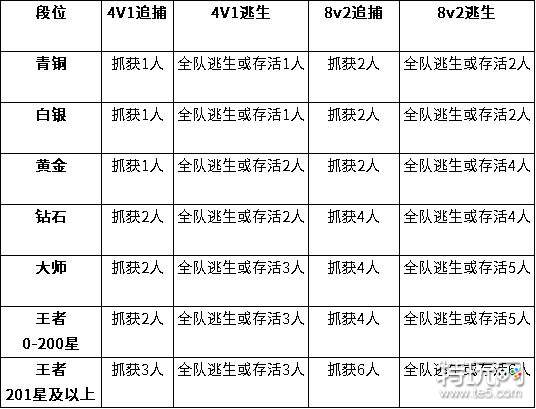 1、调整后,是否获得段位积分将只由玩家当局全队逃出+存活人数/抓获人数决定,让玩家的升段目标更清晰,想要上分的玩家在结算时就能够明确知道自己这局比赛有没有加分(具体加分规则将在游戏结算界面进行说明);