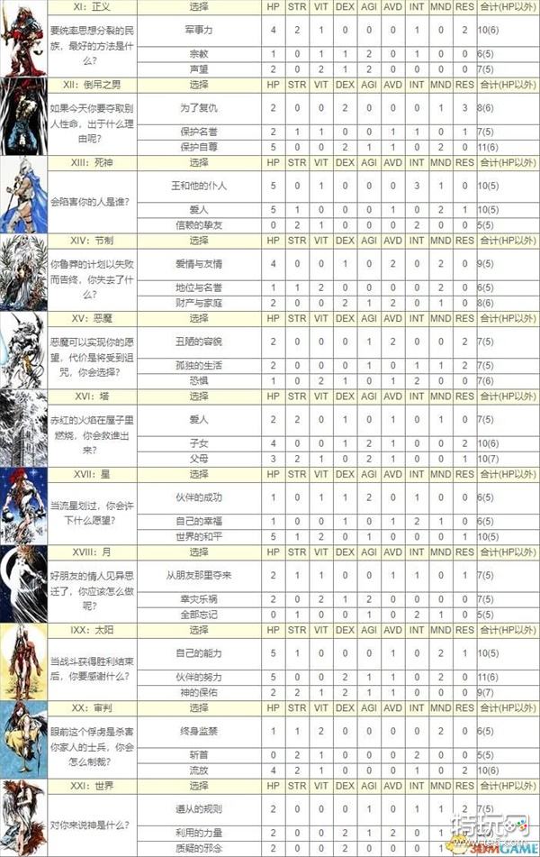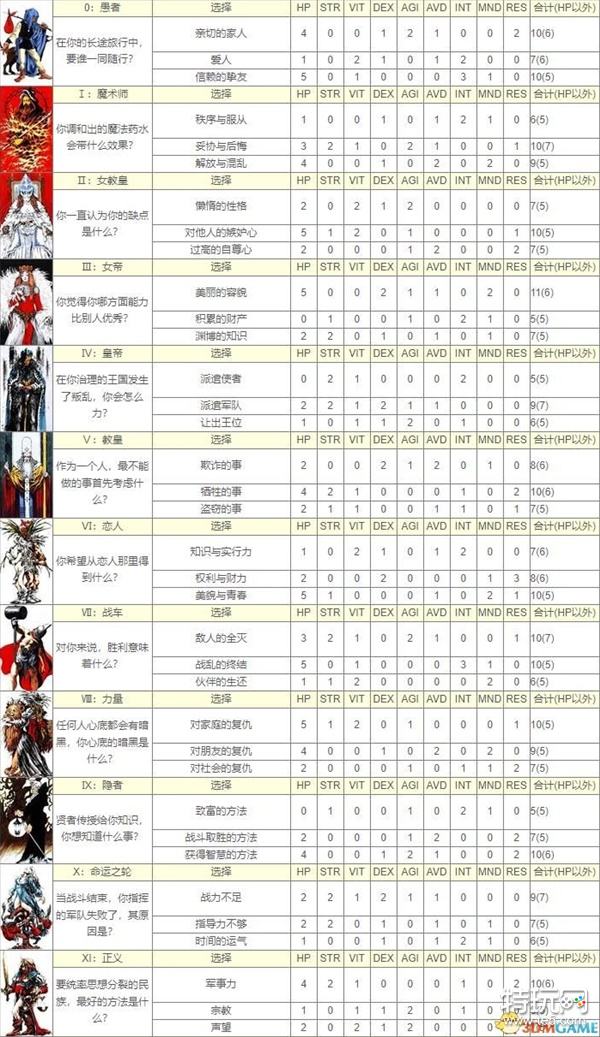 皇家骑士团重生塔罗牌选择攻略 开局塔罗牌答案属性图一览
