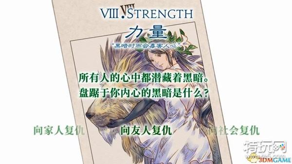 塔罗牌的选择则是从21张牌中随机抽取6张,让玩家回答问题。
