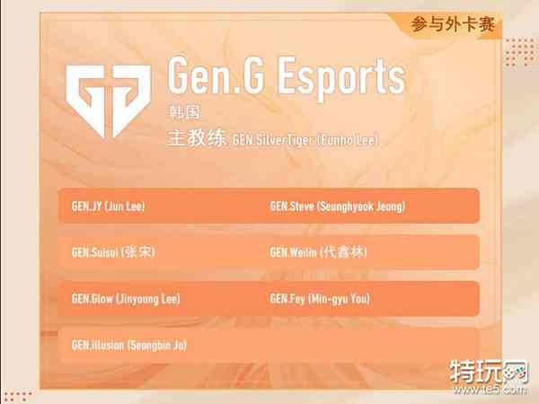 1、Gen.G Esports战队来自韩国,主教练是GEN.SilverTiger(Eunho Lee)