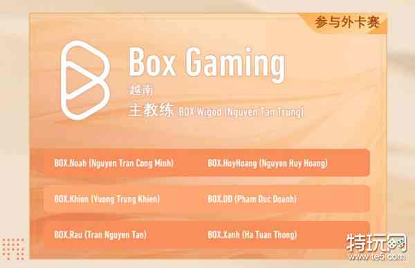 王者荣耀Box Gaming战队有哪些成员?Box Gaming是哪个国家的队伍?这是2022世冠赛海外赛区的队伍,下面为大家介绍一下队伍的成员构成以及战队所属的赛区,想要了解的玩家可以参考以下介绍。