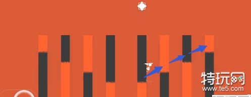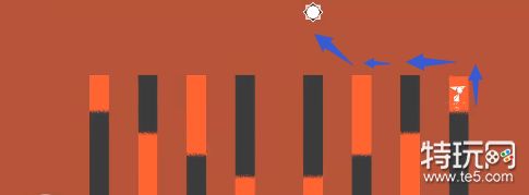 2、一直往上移动,走到头跳一格到右边的红色方块上。