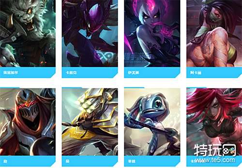 刺客:螳螂、劫、阿卡丽、剑圣、卡特琳娜、狮子狗、伊芙琳