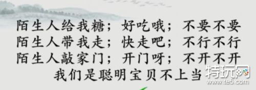 以上就是玩梗大师聪明宝贝不上当的关卡通关攻略了,小时候的趣味儿歌还能在这里重温,也是一种不错的相遇呢。更多游戏详情,请持续关注特玩网。