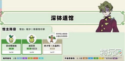深钵镇草馆主蔻沙,也是三只,大将是17级的树才怪,不要用电系的布拨去打哦~还是用飞行和火系技能随便打