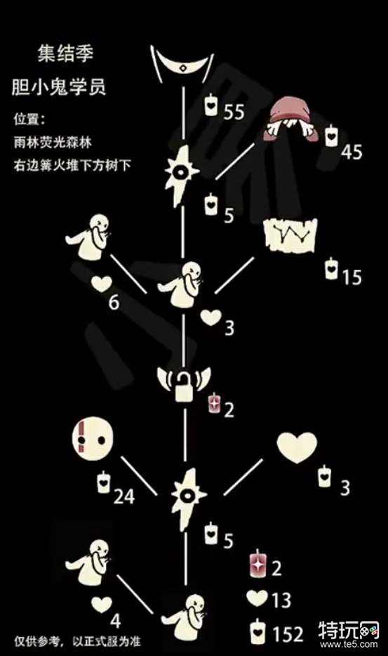 2、先祖的兑换图可以参考下图所示:兑换所有道具需要152蜡烛以及13爱心,玩家们可以提前准备蜡烛来进行兑换。
