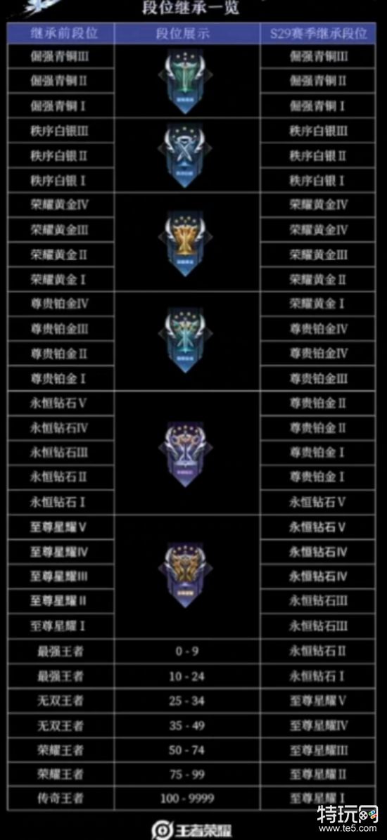 王者荣耀s30段位继承表 s30赛季段位继承规则介绍