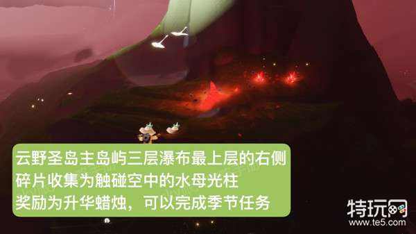 在主岛大瀑布的右边,收集水母光柱,获得红蜡烛奖励。