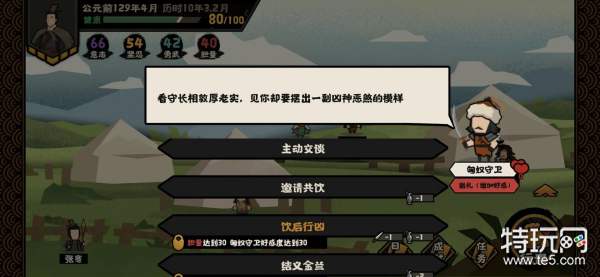 与车师守卫交谈,恐吓他获得资源,可以在车师商人处补给一点点粮食,不过要留够150钱。