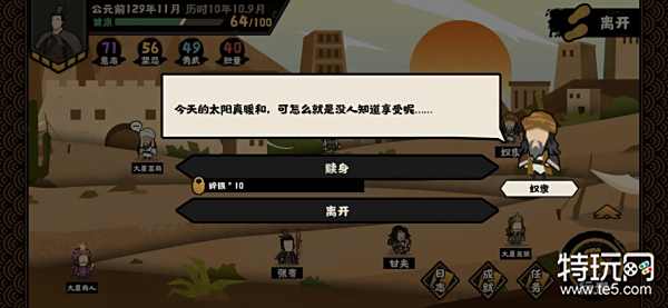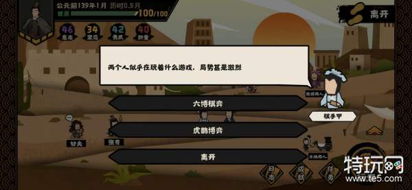 与棋手交谈,选择六棋博弈,完成一局后离开。虎鹊博弈,这个可以进行多次。每次进行都会增加属性,反正你之后身上的钱都会被打劫完,不如在这多加几次属性。