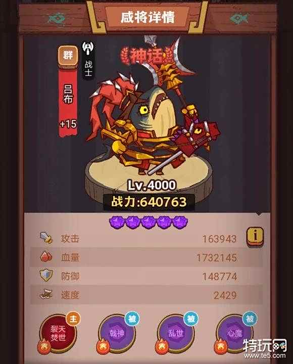 吕布:吕布是群雄神话品质的咸将,场上位置为战士,伤害极其可怕,生命值过低时会提升多个自身属性,可通过首充获得。