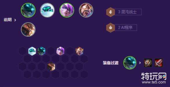 二阶段就要出连胜效果了,2-1要到4级,2-5要到5级,要先得3混沌战士,再出2AI程序,5人口以后出一个前排斗士。有2-3个两星卡在场效果更加不错的。