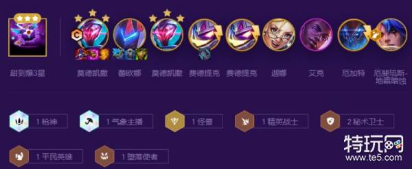 2、阵容羁绊:1枪神1气象主播2怪兽1精英战士2秘术卫士1平民英雄1堕落使者