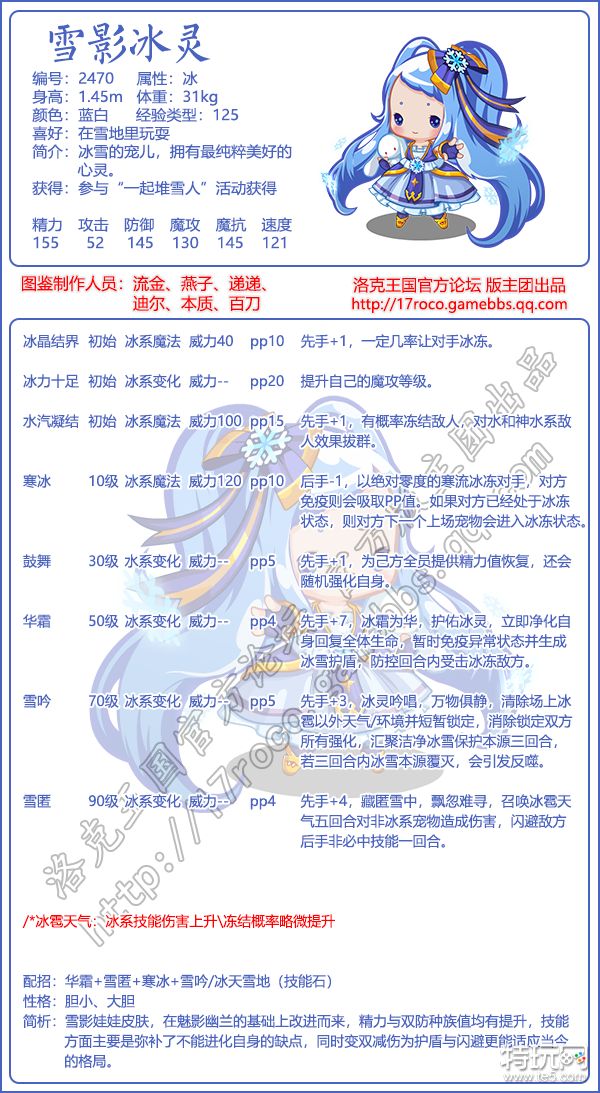 3、雪影冰灵简析:雪影娃娃皮肤,在魅影幽兰的基础上改进而来,精力与双防种族值均有提升,技能方面主要是弥补了不能进化自身的缺点,同时变双减伤为护盾与闪避更能适应当今的格局。