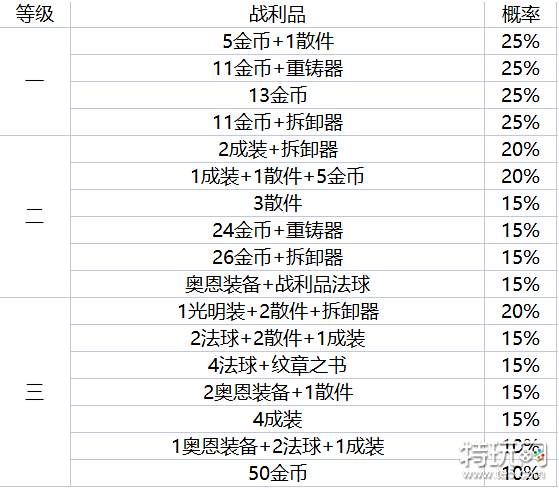 这个进度就需要玩家自行去记忆了,每当你选择一次”继续搞事“的时候,你的战利品就会进化一级,质量会变得更高。前段时间设计师透露,战利品最高进化到第七级。这里给大家提供各等级战利品掉落概率的图,需要可以自行保存。