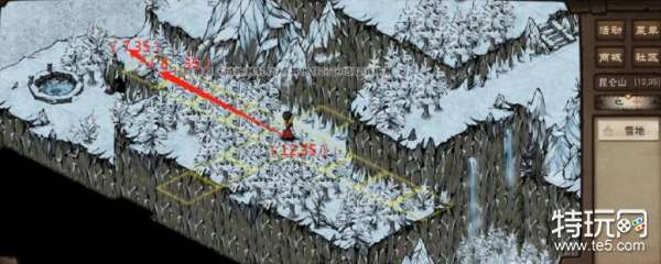 1、在昆仑山西南找药童藏身之所,需要用到雁行功九重二段跳,先从(14,33)起跳向南跳2格到(14,35),紧接着二段向西跳2格跳到(12,35);