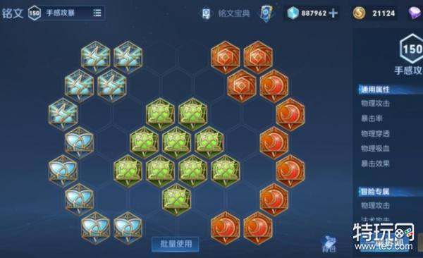 绿色铭文10鹰眼,红色铭文3无双+7红月,蓝色铭文5狩猎+5夺萃,个人比较倾向英雄的使用手感,所以,红月和狩猎搭配的多一些。