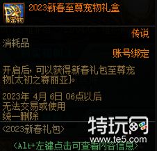 2023新春至尊宠物礼盒传说,是消耗品账号绑定