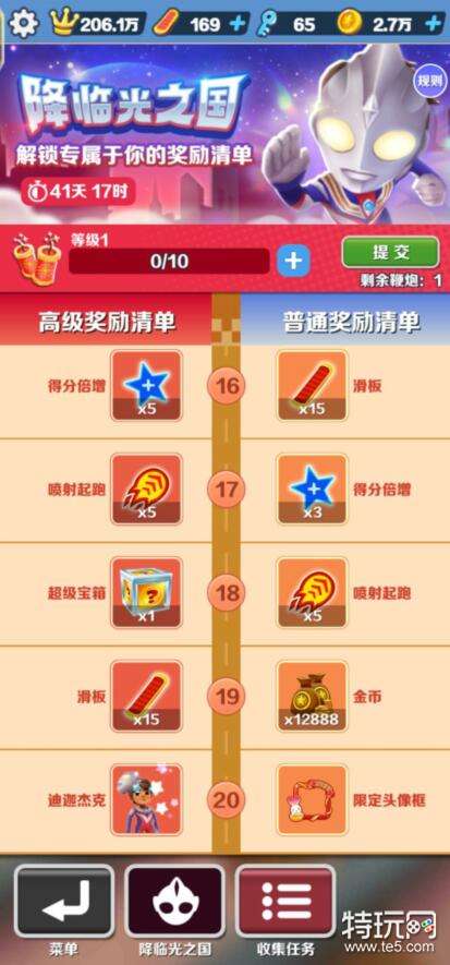 通过解锁高级奖励清单,并达到20级即可获得奥特曼皮肤,专属滑板是在10级的时候解锁的。