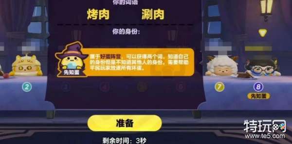 3.先知蛋:知道自己身份但不知道其他蛋仔身份,一次能看到两个词语(好人词+坏人词,但无法区分哪个是好人词哪个是坏人词),需要帮助平民蛋找出所有坏蛋。