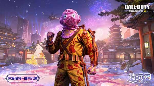 深海潜将-福气元素一改往日颜色的着装风格,换上了充满新年氛围的潜水套装。潜水服上带有爆竹、祥云等传统图案,其中的小猪与其粉色的潜水头盔互相呼应,俏皮可爱,与他的战士身份形成反差萌!