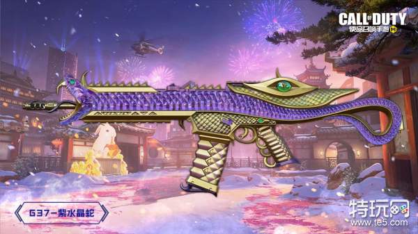 G37-紫水晶蛇的枪身布满清晰的蛇纹,一条紫晶蛇贯穿其中,舌头延伸至枪口,长开大口,露出尖利寒芒!机瞄照门处翡翠色的巨型蛇眼闪烁着凶狠的光芒,让敌人不寒而栗。