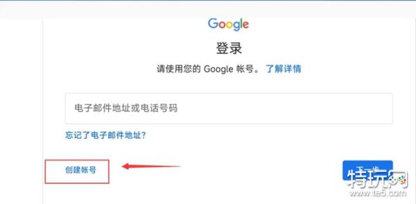 之后会看到,要求我们登录谷歌账号的操作,有能正常登录的谷歌账号直接登录即可,如果没有可以按照下图的创建账号指示点击进去